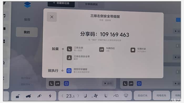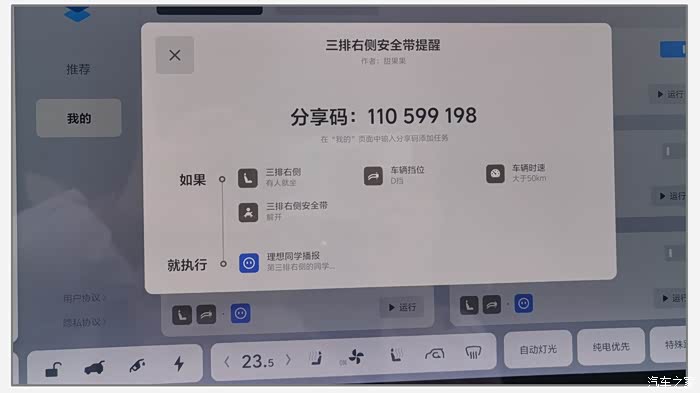 我最感谢的是理想6个座位都有系安全带提醒,不仅如此,我还设置了任务大师,不停的提醒坐我车的朋友系好安全带,反正我不烦,因为安全最重要!