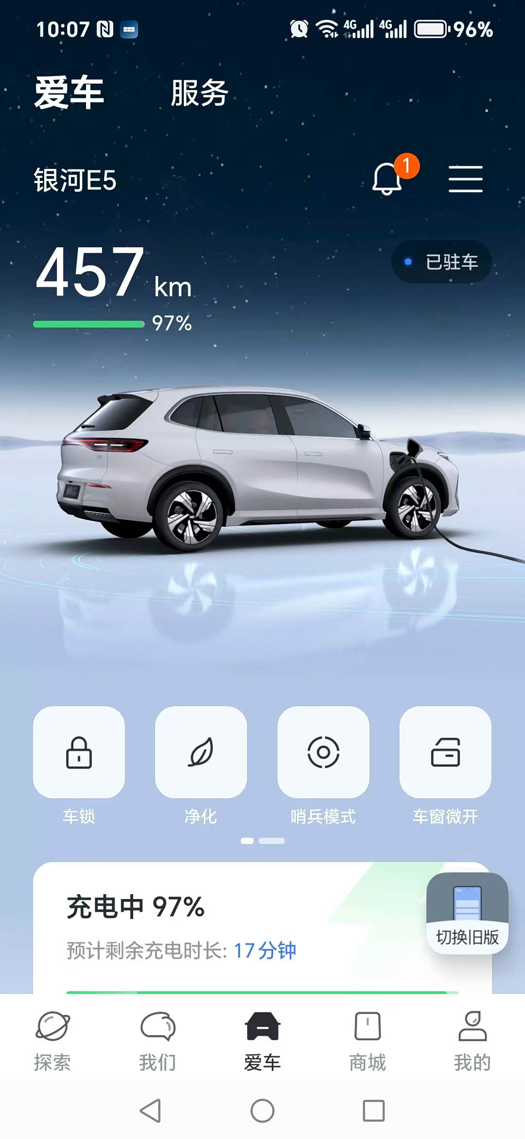 我们的吉利银河E5除了家充之外,在外也可以使用快充。吉利银河E5的峰值快充功率可以达到120kW。从30%充至80%的电量,一般只需20分钟左右。