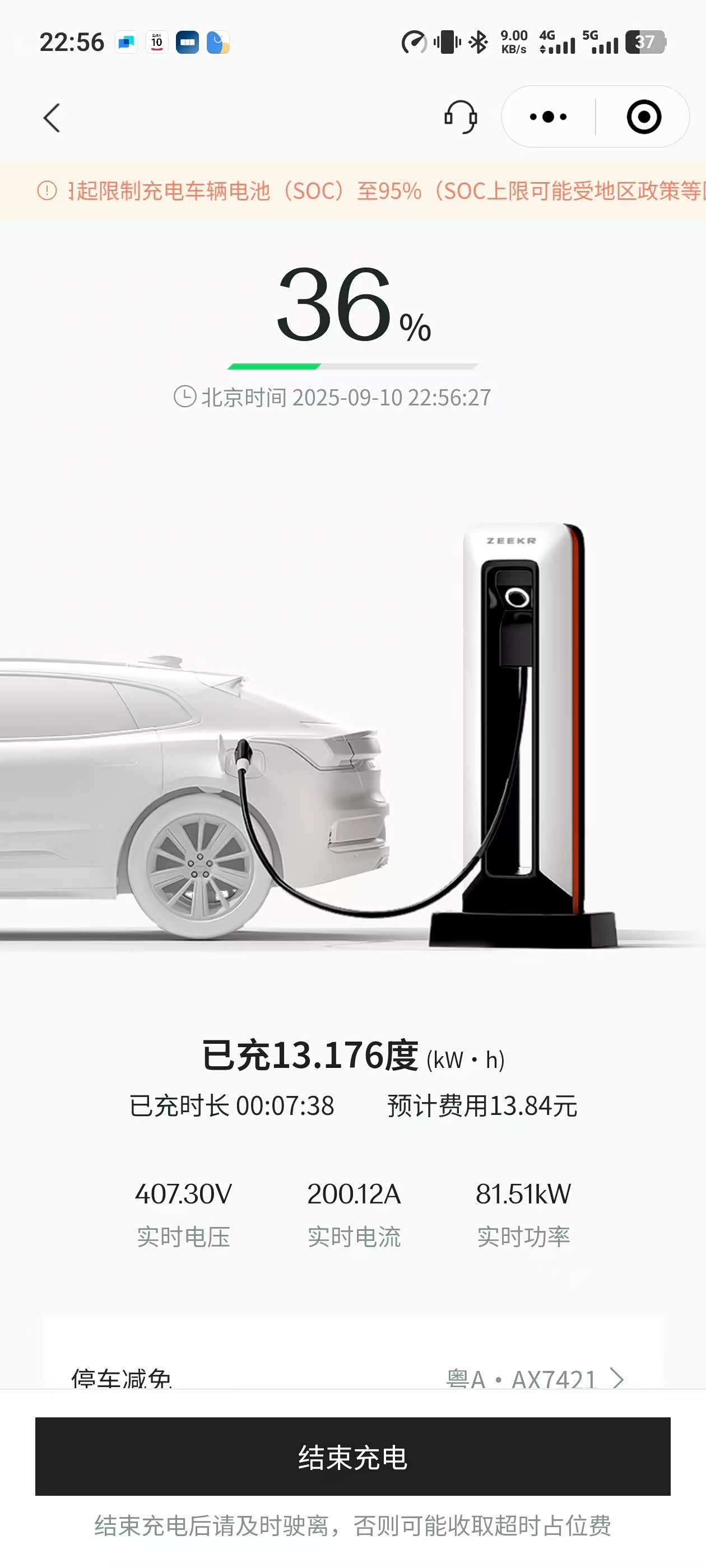 我们是220V电表所以220V 7kW充电桩,满足银河E5的最大充电功率。