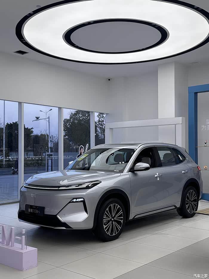 然后就是吉利银河星舰7 EM-i,起售价9.98万,120km启航+版售价11.28万元左右。搭载新一代雷神Emi超级电混技术,神盾短道电池,满油满电综合续航达1400千米。全系搭载磷酸铁锂电池,CLTC工况下,对应纯电续航55km、120km,对应综合续航1355km、1420km,馈电油耗则均为3.75L。