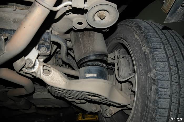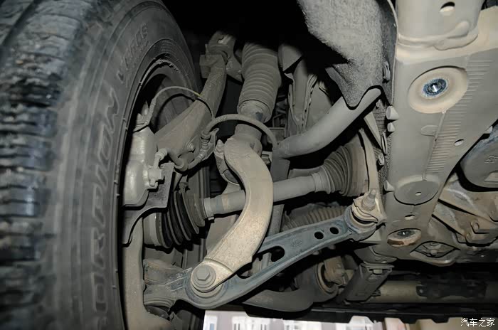 方向机设计的在驱动桥之上,路虎当然在越野设计的功底上是当仁不让的,还是保留了很多优良的设计,比如它的前桥,安置的位置很合理