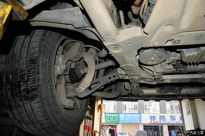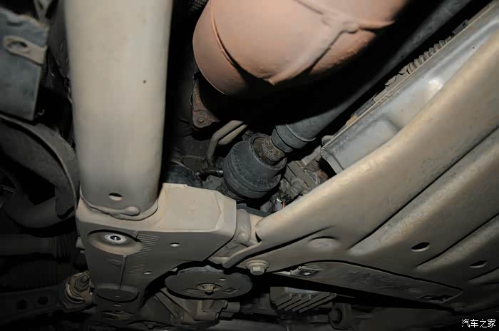 前传动轴很细,甚至毫不夸张的还没有一台高尔夫粗,说明它的设计不是主要出力,是为了协调车身稳定性的设计,四驱在雨雪天的稳定性还是明显好很多的。