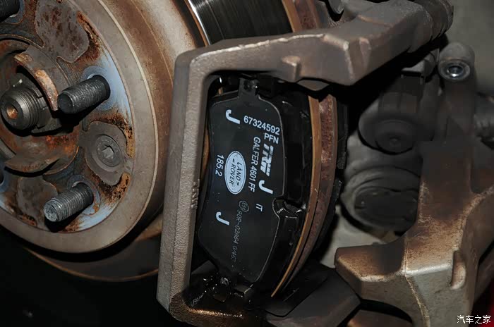 路虎的前刹车片有菲罗多提供,后刹车系统由于使用了美国天和提供的电子手刹,所以原厂配置的是TRW品牌