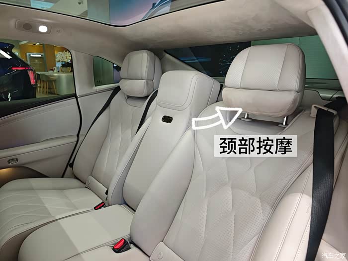 其三,车上座椅配的加热通风和按摩,这些都很常态化,但是这车带有颈部按摩,也是新鲜配置,我体验了下,属于机械按摩那种,挺有力度,感受可以。