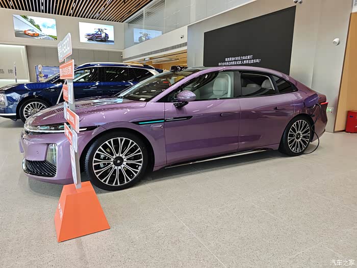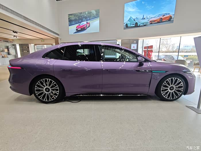 我看的这款展车是水晶紫色,不确定这个颜色是否加钱,我看官网是有6款外观色(紫色、白色、灰色、黑色和银色),3款内饰色,市面上主流色都有了,大家要是对这车感兴趣可以实地看看。