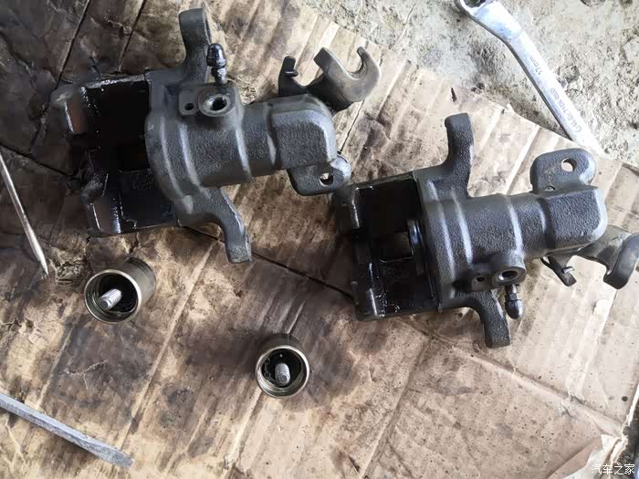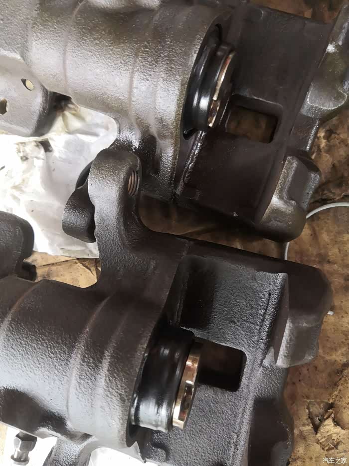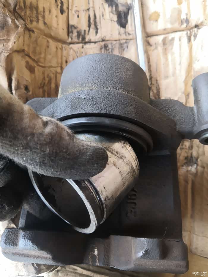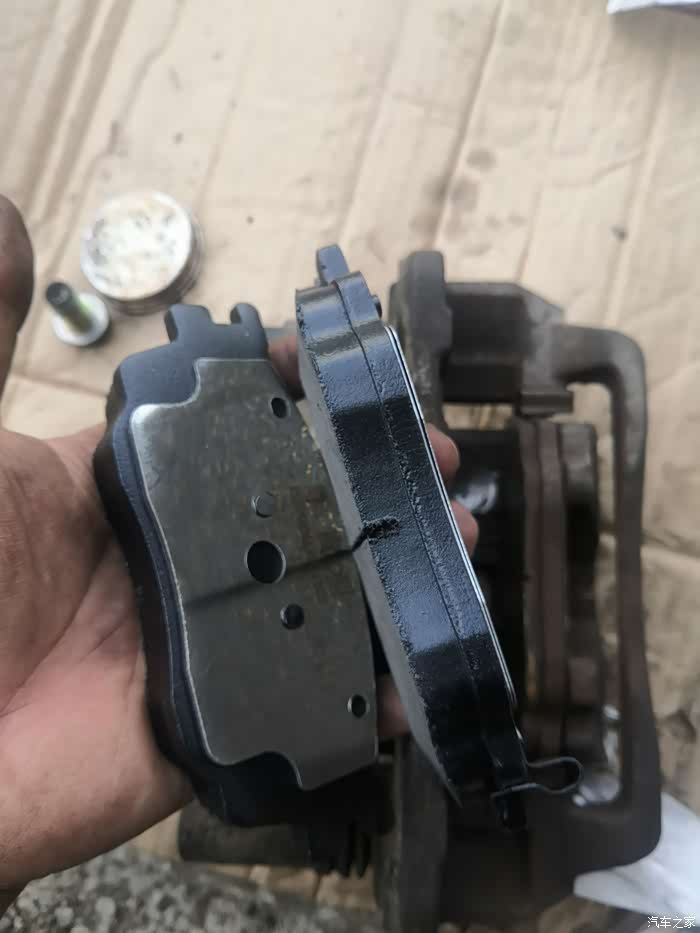 活塞生锈了,往复活动阻力大,这个安装时按照说明书步骤,用专用工具压好并调节好间距,使后刹车片能完美咬合刹车盘