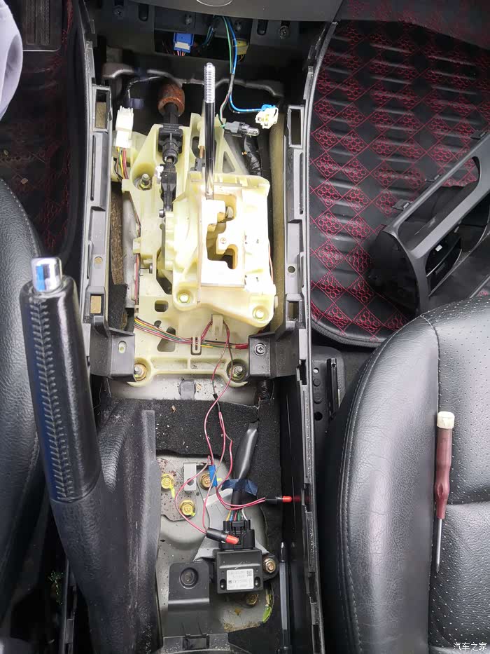 提拉拆下水杯架后,再拆档位面板就可以调整手刹拉线了