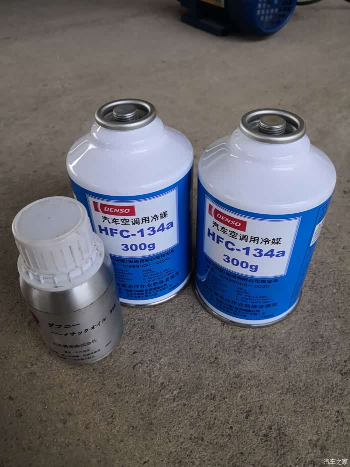 空调制冷弱了,加注两瓶冷媒和一小瓶空调压缩机油。