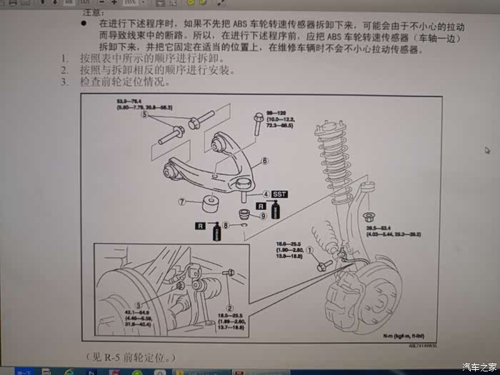 把元宝梁托架后固定螺丝拧下才能拆下前下弯臂