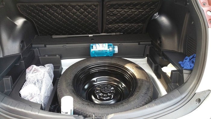 最终成果,一下能多放不少东西,胎下面也能放不少,我的杂物全部放进去了,现在后备箱上面干干净,对我个人而言花的代价很值。