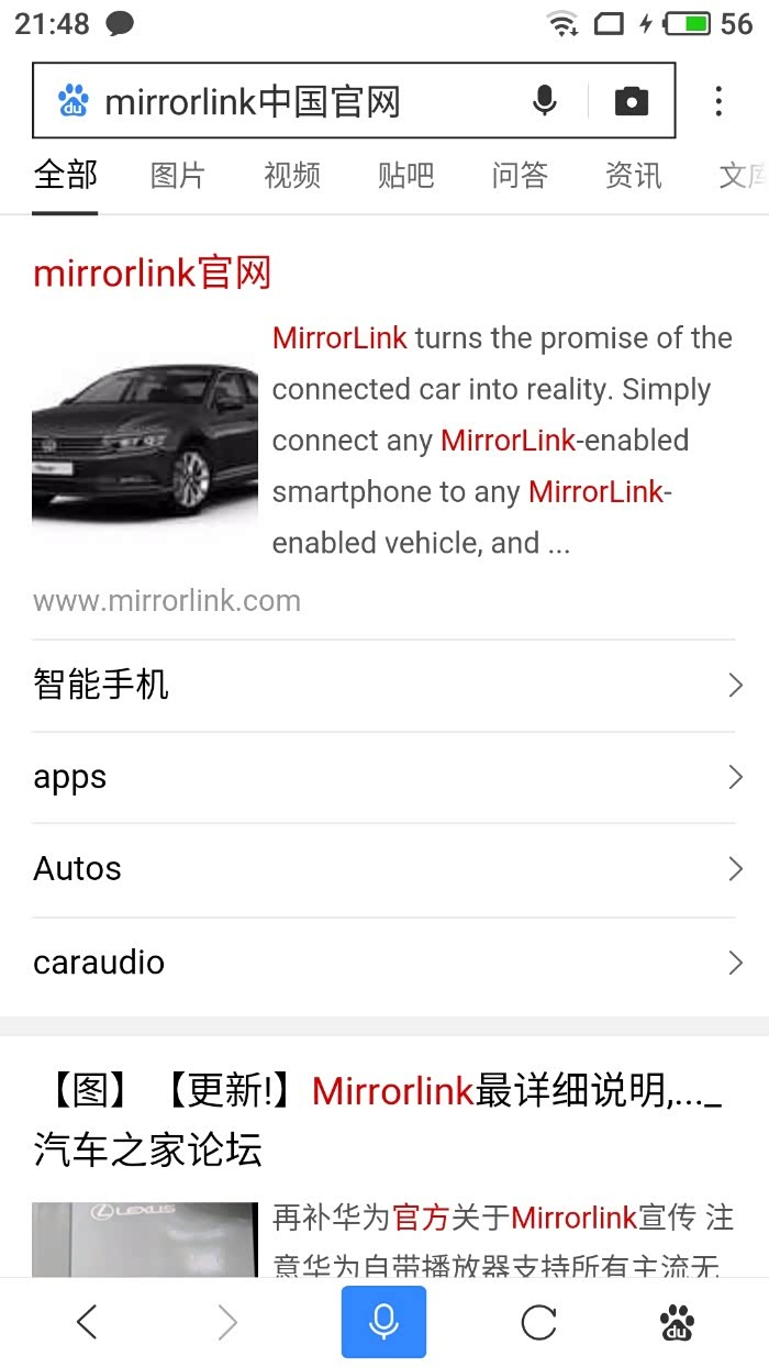 。想到就开始做,先用我的魅族安卓机插上面看看。结果按导航键提示需要镜像功能才能打开。按互联功能都是一片空白。要想实现车载互联,看上面有两个互联选项,一个是carplay(这个是苹果专用),另一个是mirrorlink(这是安卓机专用)。第一步想买台二手苹果直接插上面用carplay。到闲鱼找了好久。不是价格太高就是水太深。代价搞高了,玩这功能又没意义了。那就退而求其次,第二步。用车上的mirrorlink功能,针对安卓机。先到mirrorlink官网上看看哪些安卓机自带这功能,还有镜像功能。大部分三星都可以,索尼的Z系列,还有HTC和LG的部分机型,这些机型里面。我还是偏爱索尼些(主要二手索尼冷门。价格贵不到哪去