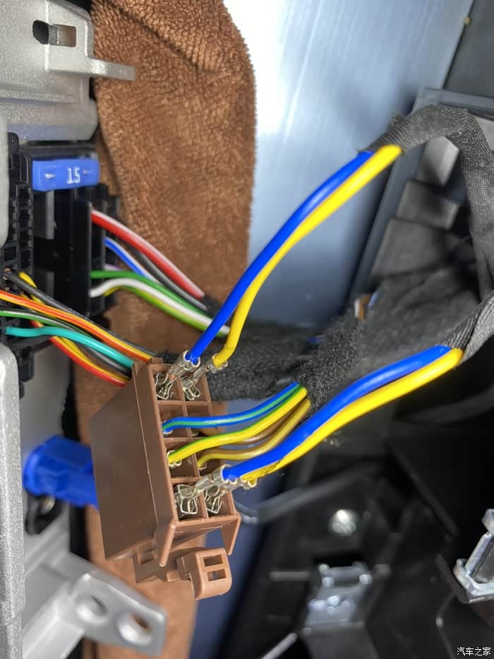 喇叭线最后插到车机背面中间的插头两端。其实只要会拆,就很简单。