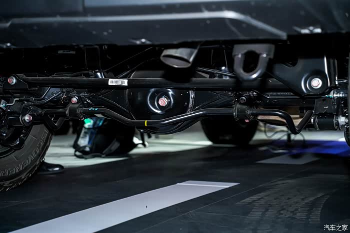 俯下身看了看坦克300的底盘,做工还是挺不错的,没有人工打磨的粗糙感,采用了前双叉臂独立悬挂+后多连杆整体桥悬架结构,兼顾了舒适性和越野性,看来WEY做越野车是非常认真的。