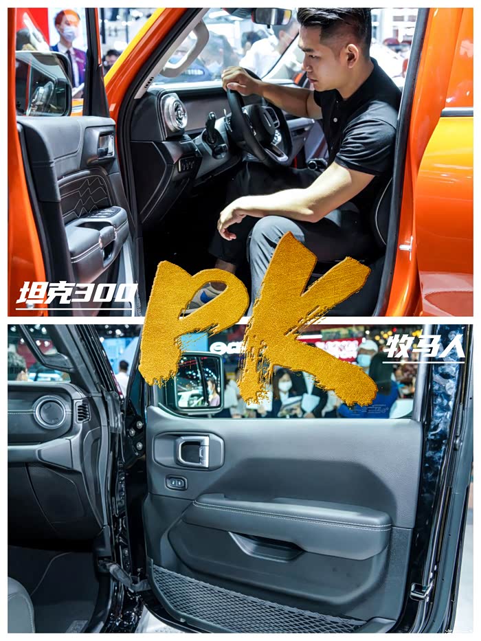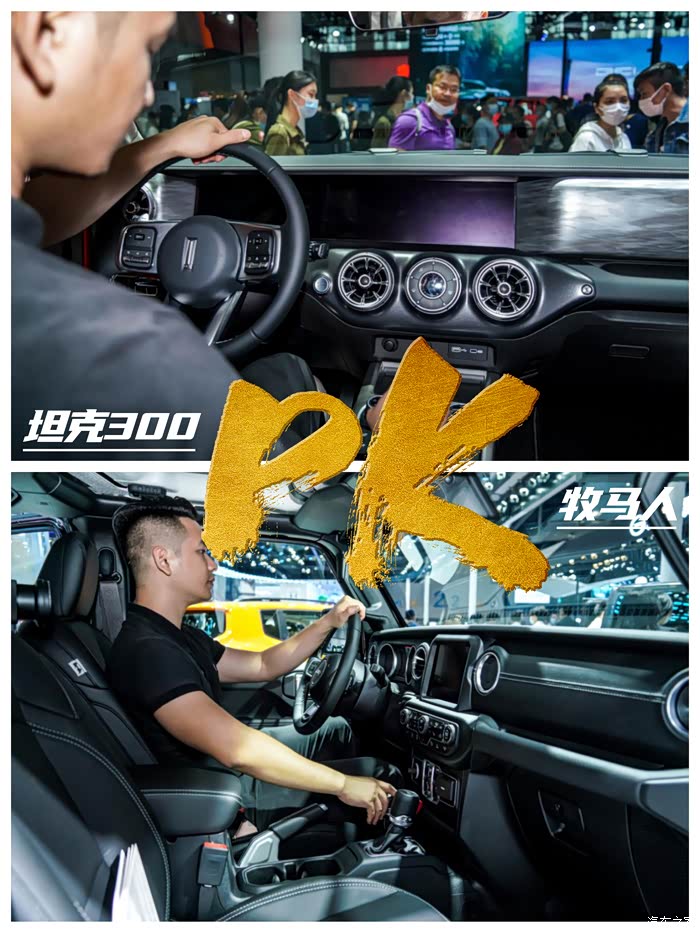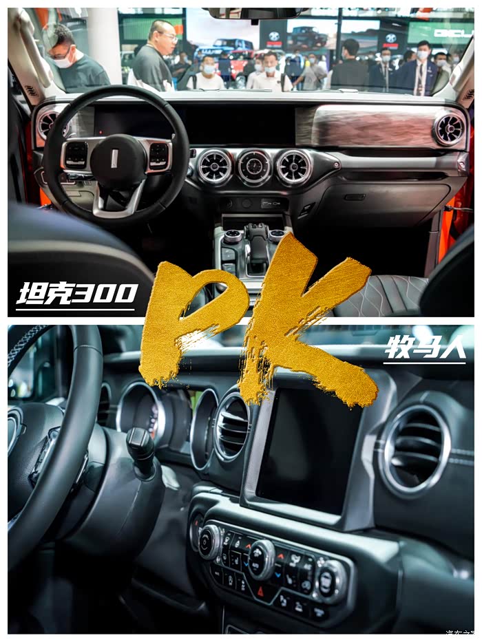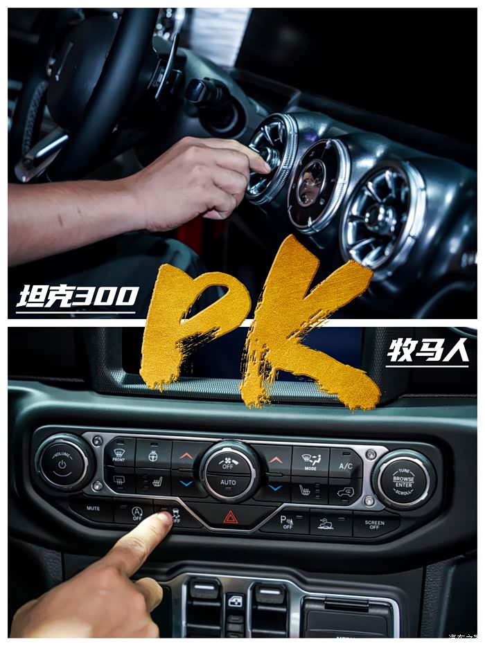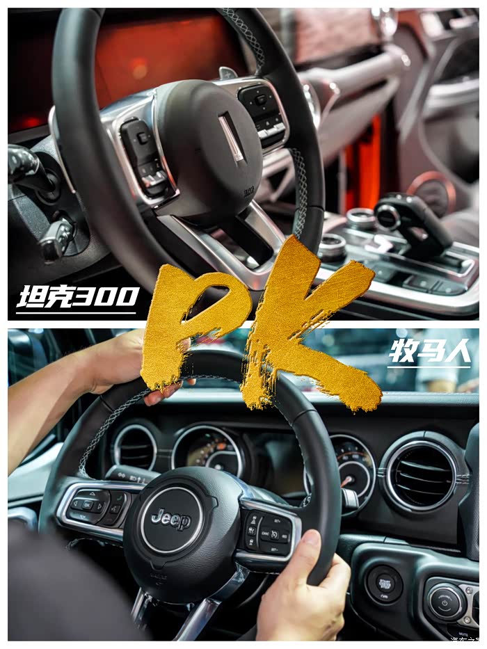 坦克300是一款全新的硬派越野车,我最直观的感受是既重视越野功能,也非常重视乘坐的舒适性,设计语言更加时尚,智能化的配置更多;牧马人是越野老炮儿,在越野圈名气大,但有点吃老本儿的感觉,不是很重视乘坐的体验,整个内饰很复古,这么多年来变化不大,一些智能配置也不到位,不过有一说一牧马人的越野能力是得到大家肯定的。