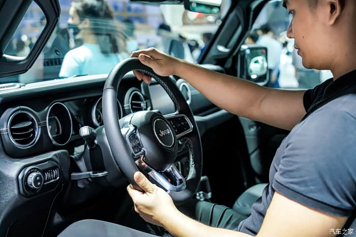 牧马人采用的是三幅式多功能方向盘,中间是非常经典的JEEP品牌logo,这个其实没什么好说的,两款车的方向盘都是差不多的设计,个人感觉从观感上牧马人的更精致一些。