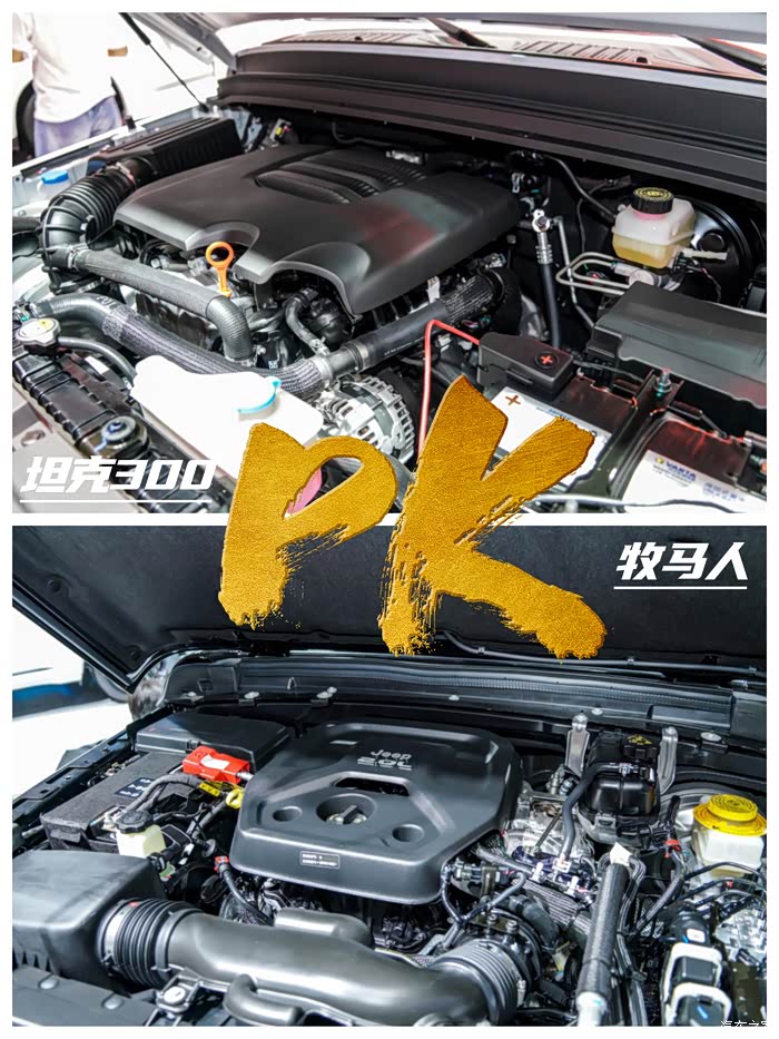 牧马人搭载了2.0T汽油发动机,最大功率为266马力,峰值扭矩为400Nm。从动力参数来说坦克300越野版和牧马人80周年纪念版差距不大。