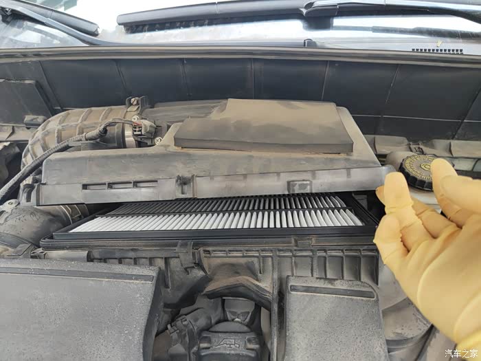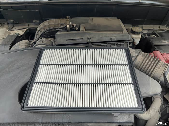 然后是空气滤芯,空气滤芯相当于发动机的口罩,也是过滤一些灰尘杂物,避免发动机进气的时候吸进去导致故障。空气滤芯在机舱里面,首先打开引擎盖,滤芯盒在发动机的右边,掰开三个卡扣就可以取出滤芯来更换了,安装的时候也要注意安装方向,反正我觉得更换空气滤芯比空调滤芯简单一些,两个的更换方法都不算难,有一点动手就可以。