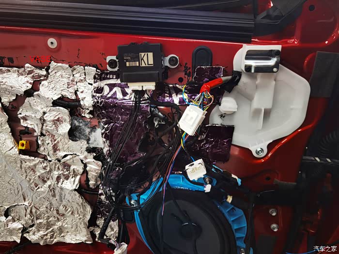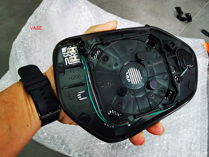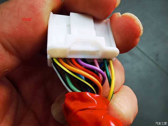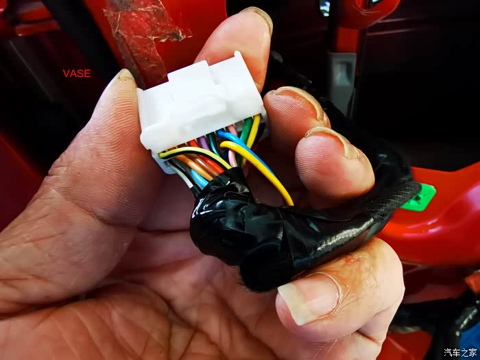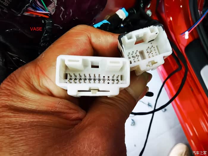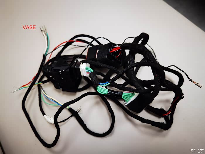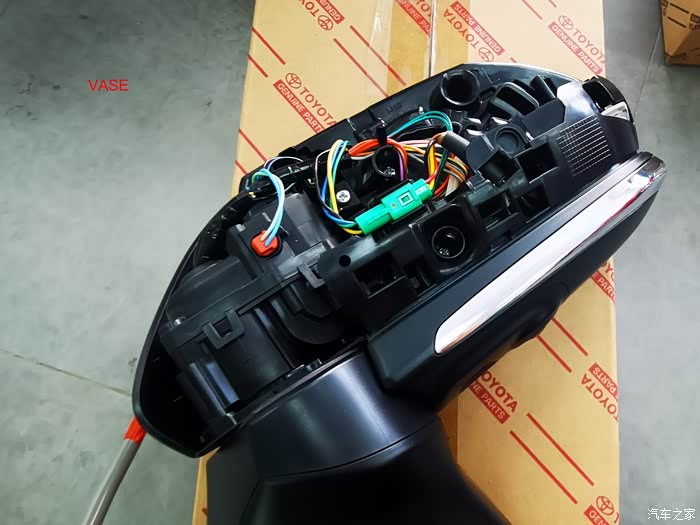 旗舰版后视镜总成的插头。很多线。只有3个预留孔