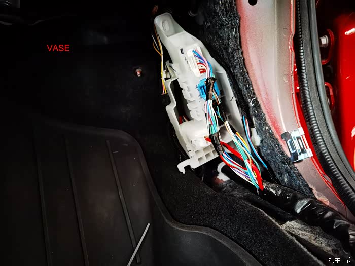 再把电子防眩目控制线插到原厂插头上。只剩1个预留孔了。舒坦