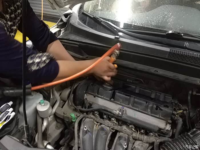 搞定了积碳,师傅有用电子内窥镜,检查了空调的蒸发器,我的还好,比较干净,师傅就简单的清理了一下。马上就是夏天了,开始频繁的使用空调,如果蒸发器比较脏的话,影响制冷效果,而且不卫生,影响健康。建议车友们有条件的话,还是清理下蒸发器。