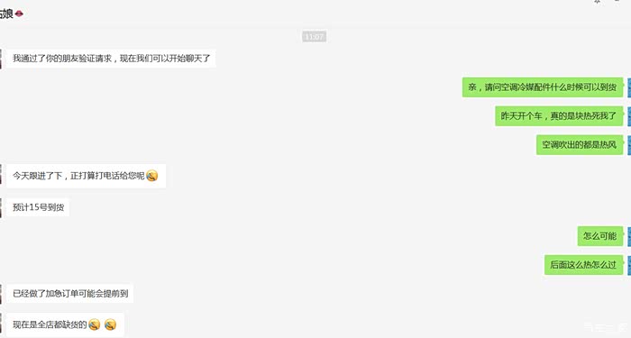 现在整个宁波市都没有这个空调配件了,4s说上周五定就没货,今天告知要15号左右才能到货,需要半个月时间,按照这个天气下去,真的要成烤乳猪了!