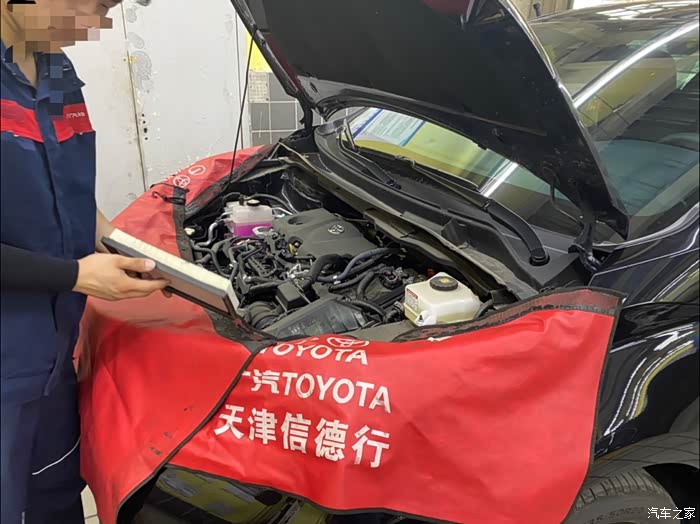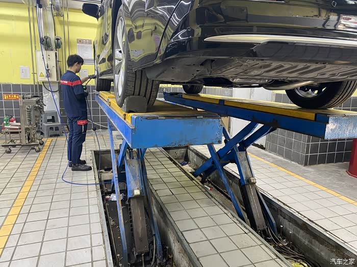由于此次保养不涉及更换项目,只有检查,不的不说检查的工作人员还是很仔细的,首先检查车辆油液的刻度