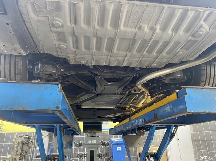 升起地盘,查看前轮发动机变速箱各个管路,前轮结合处的状态。