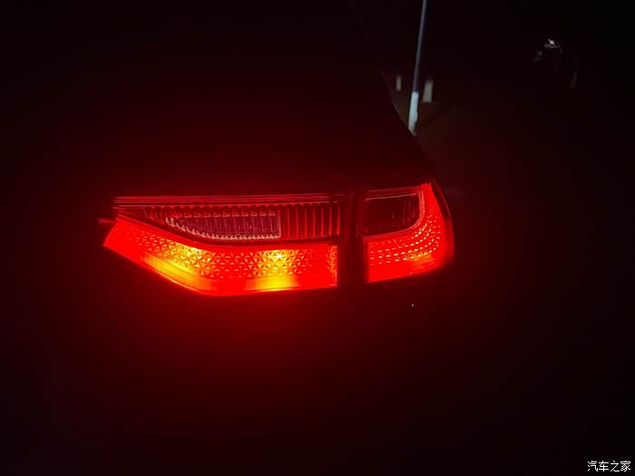 首先我们看到这款车的尾灯部分,在夜晚的时候整体效果看上去还可以。唯独比较遗憾的是中间部分没有灯组,不能完全点亮。这一点也是还没有入手的朋友比较关心的问题。尾灯在细节方面做的还是挺可以的,两边的灯组也是很通透。