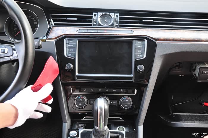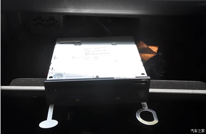 拆副驾位主机需要插两个铁片钥匙,插入,听到咔嚓一声,往外轻轻一拉就出来了。