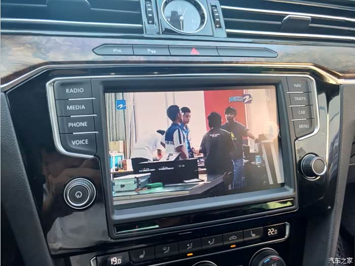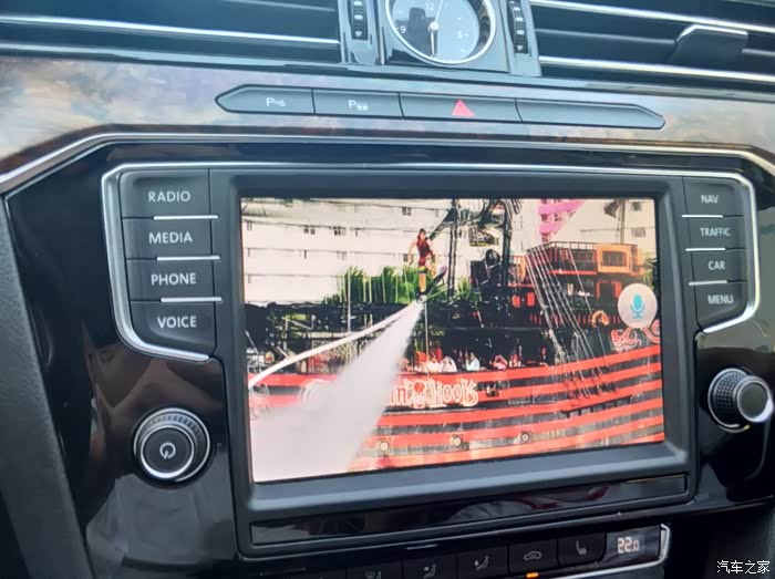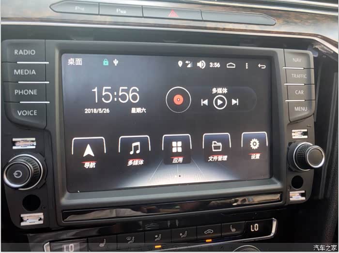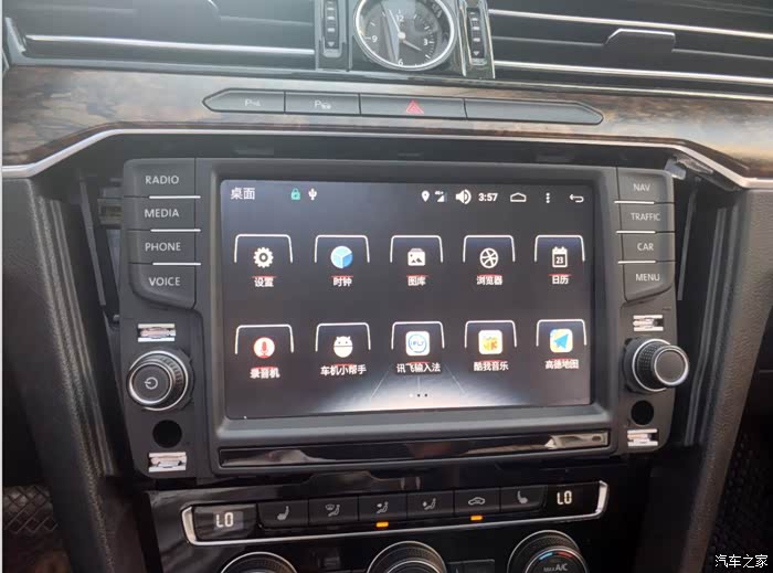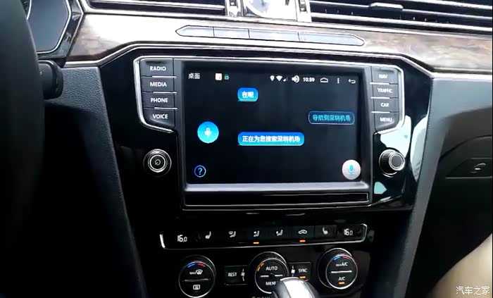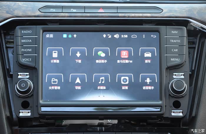 如果要切面原车系统,很简单,只需要按一下面板上的RADIO不回到收音机,MEDIA就回到播放音乐,再双指划一下,就切到人工智能系统。