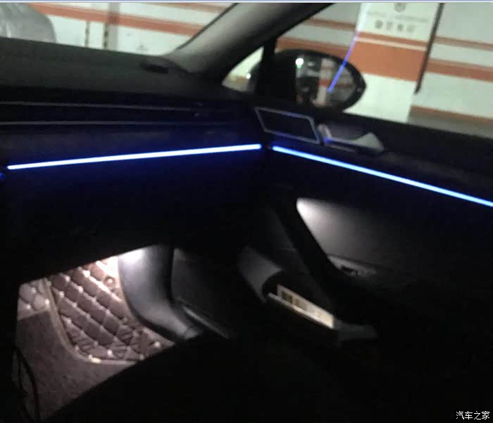 晚上拍的氛围灯,原车本身带三色氛围灯,这个灯晚上的效果真不错,层次感分明,为这个设计点赞。后来听朋友讲,尊贵版的三色氛围灯可以刷后十色的,现在我已经刷成了十色的,而且每选择一种灯光,仪表的颜色会出跟着变,MIB原车8寸主机的界面也同样会变。