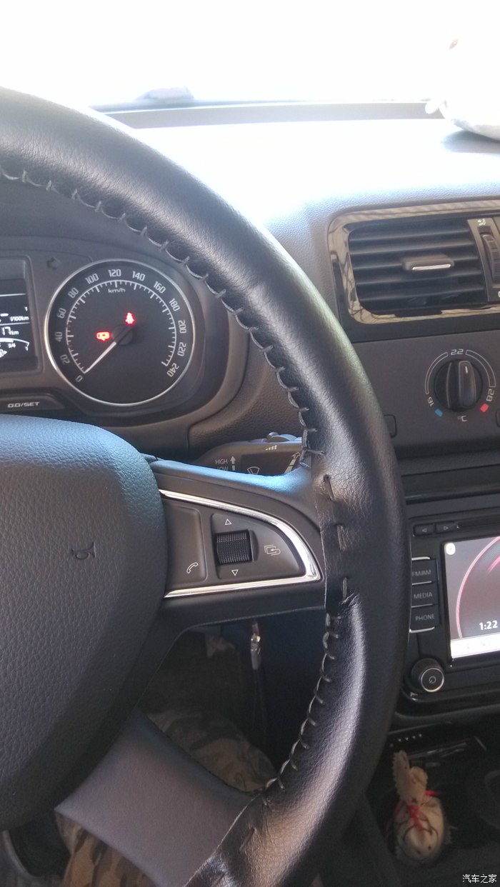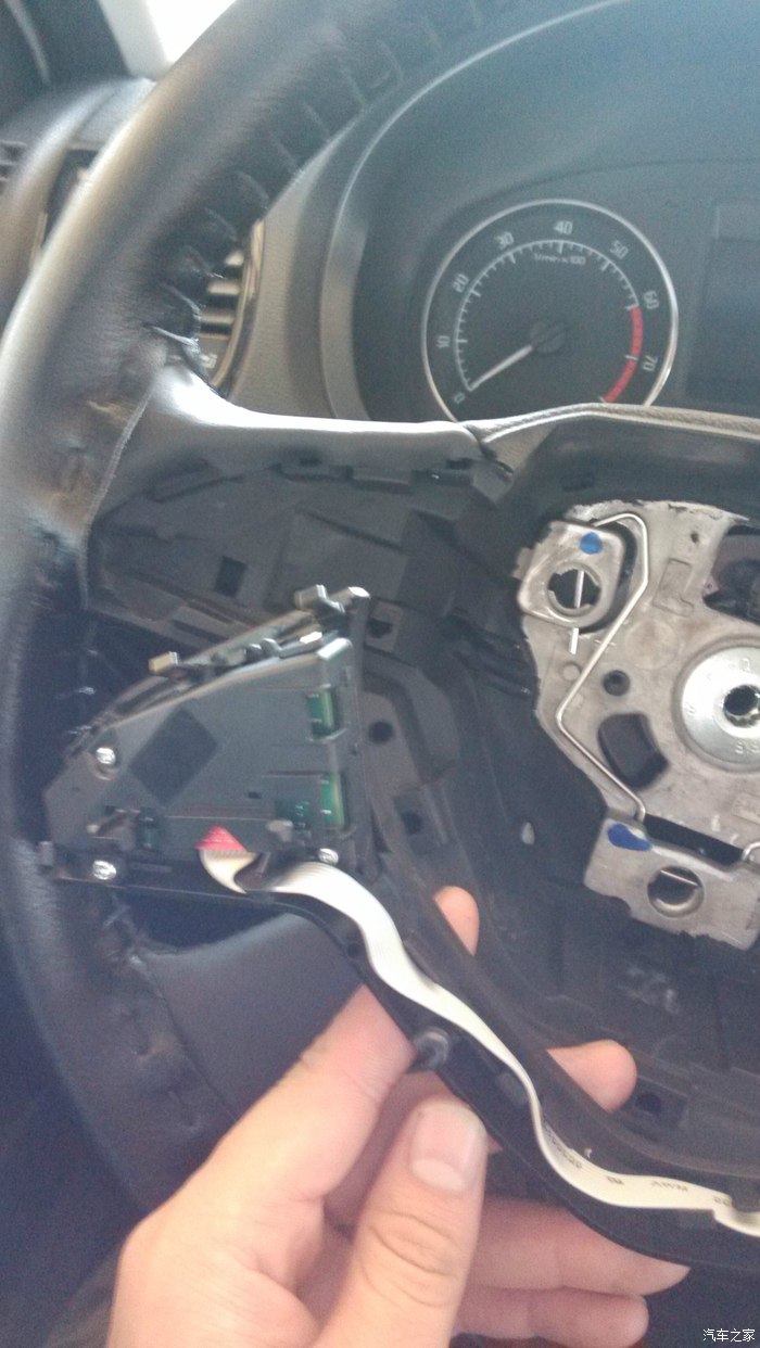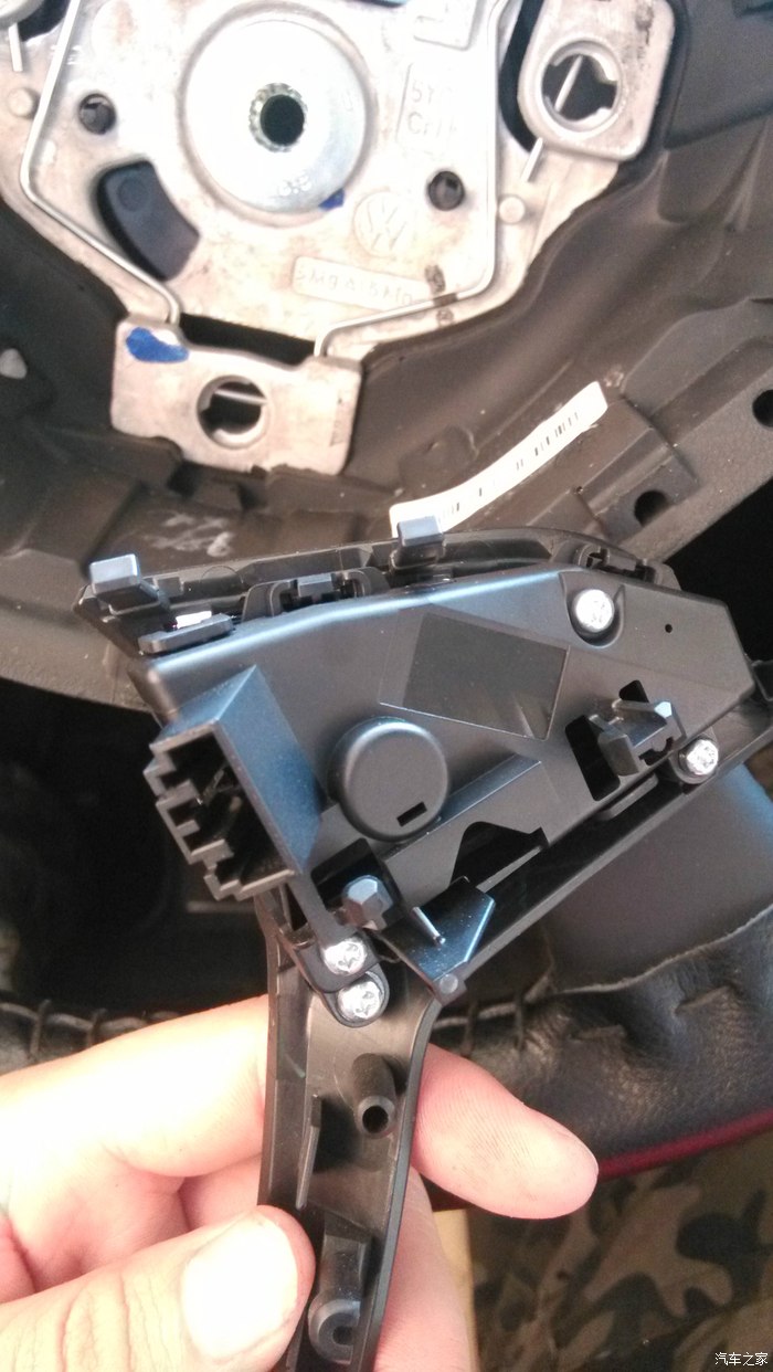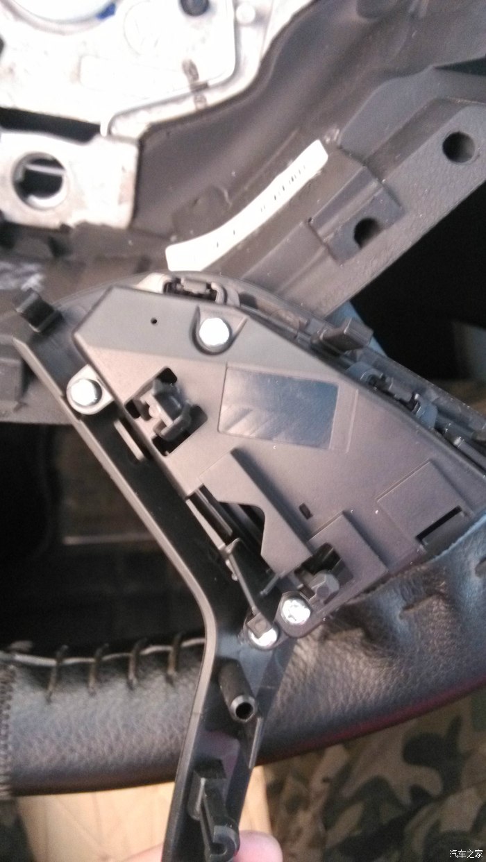 然后整个下框再按进去就行(忽略本人缝的方向盘真皮,画蛇添足了),这个模块没有魔音按键,就是语音识别,这也是被原主人换下来的原因,对于我那“标准”的普通话来说,基本没用,没有纠结,