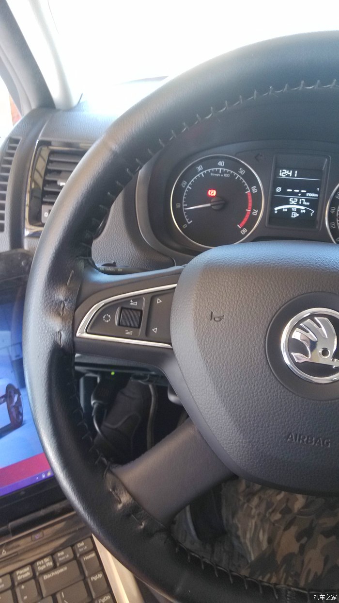 方向盘灯已经点亮,但是没用5053匹配,车子喇叭不响,按键没用,5053最后才到货,昨天硬着头皮开一天,今天5053到货,进去多功能方向盘点开,左边音源切换,音量滚轮,上一曲,下一曲完美支持,右边只有电话键能用,剩下一个滚轮跟画面切换是控制那个土豪仪表的!原车有多功能仪表切换按钮,不纠结,RS仪表?毛毛不够,啥时候彩票中了再说!