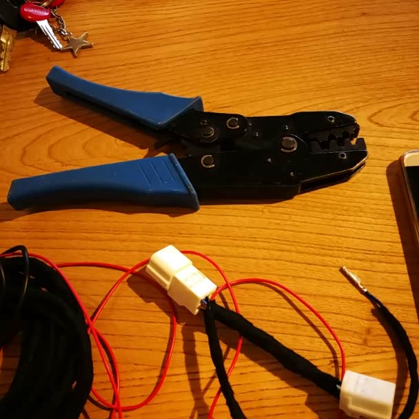 最主要的就是尾灯无损取电线,我让卖家定做了一条,出线是1负2正,其中一条正极长6米,准备通到主机当触发线的,还买到了带线的尾插针,以及防水接插件1P和2P各一组,材料到齐后,开始制作专用线束了。