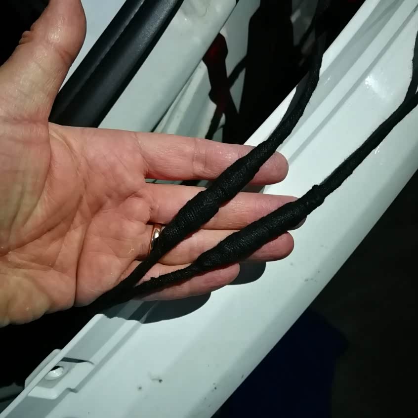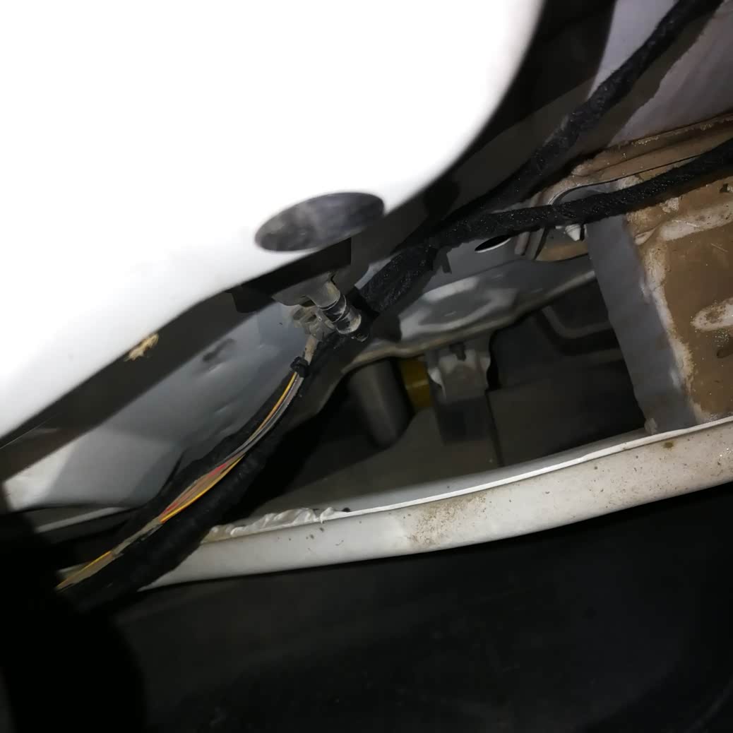 我选择从右尾灯防水帽下面从内往外穿出来,盖回防水帽时保证新增的线在下面,这样保证不漏水的,线束之所以要用汽车线束胶带包是有讲究的,因为如果单纯塑料线出来的话,时间久了很难保证不会被洞口磨破,线束中有电源正的,搭电就短路了,所以直接破线从这个洞出来是不规范的。
