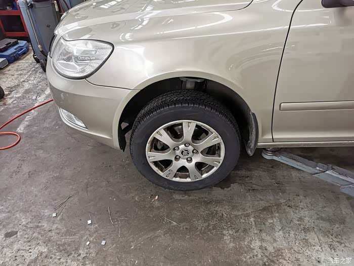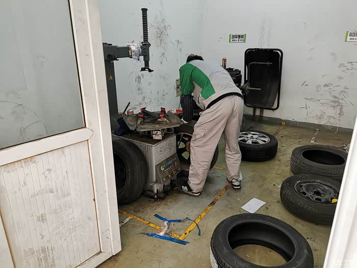 基于上述两点,我把我两条已经磨损的花纹很浅的轮胎换了。这里我要说一下,因为是前驱车的原因,前轮轮胎会比后轮磨损的更快。所以这次只是更换两个前轮轮胎。