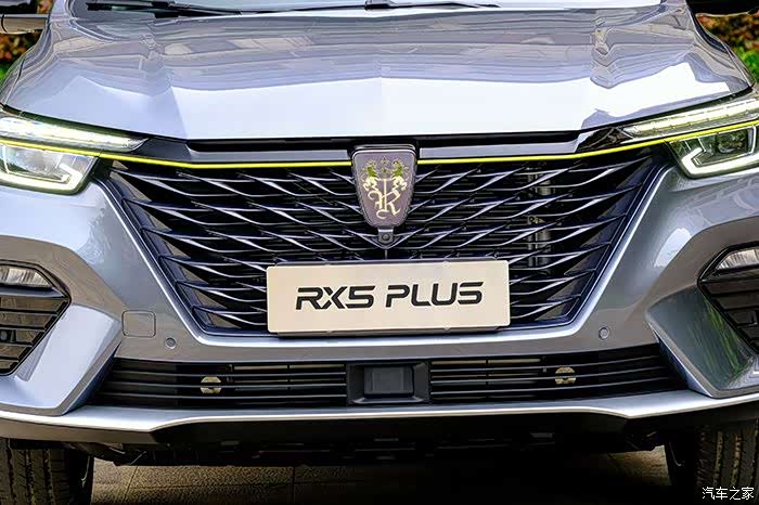 RX5 PLUS是根据上汽最新的国潮设计理念打造,前脸采用了更加激进的设计语言,使用了更加犀利的黑色大嘴中网,中间贯穿一道亮黄色搭配,两侧LED日行灯直接形成了半包围结构,点亮之后形成类似鹰眼式的效果,非常犀利。最新的黑底双狮车标用在这张大气的前脸上,显得非常动感。