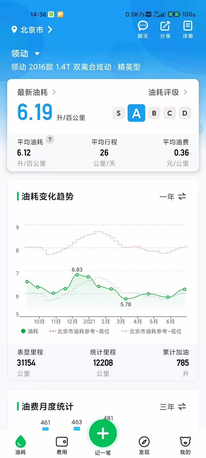 用车篇:1)本人驾车比较佛系,起步不猛,所以开领动一般就5~6个油。刚买车时跑了个石家庄高速,当时高速跑了个4.3个油,车还是挺省油的。