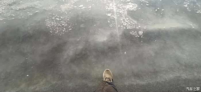 尝试着走前几步,踩在海水的冰层上,发朋友圈**下我终于可以踩在青海湖中。