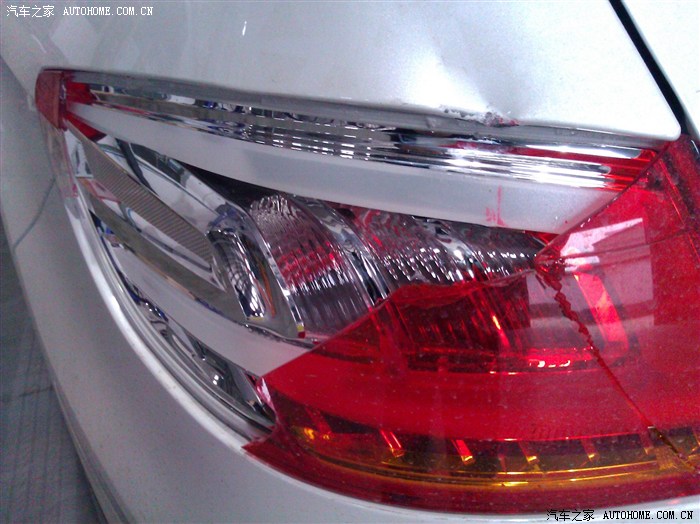。接着是晚上倒车位时尾灯撞到了柱上消防箱,左后灯破了,然后尾灯上部车身板边缘凹进去了一小块。已出险,明天去4S定损,据说要两天才能恢复,最担心的是钣金不知道能不能把凹进去的恢复原装,因为貌似很严重,漆都掉了,还要喷漆,又是珠光白的。