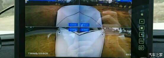 这个是第二个4分屏主机外接的录像接口,接到了前后行车记录仪的后视通道,屏幕是5寸的,分辨率也不太高,此处只是参考,用作录像用的。
