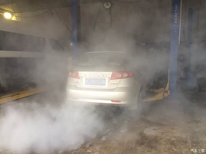 开始清洗,化清器喷入节气门,排气管喷出大量烟雾