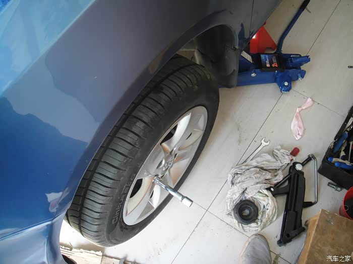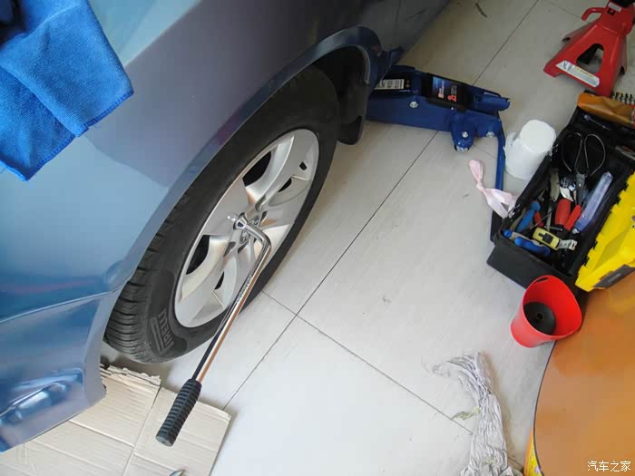 上千斤顶,卸轮胎。网购的加长轮胎扳手,因为每年自己都换雪地胎,所以工具一定要可手。