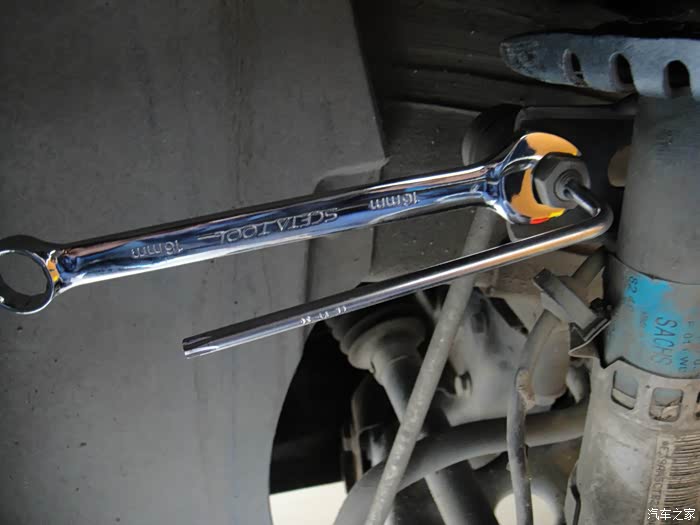 工具。我主要使用的有千斤顶2个,安全支架1个,拆卸轮胎的工具,拆减震的21mm套筒,7mm内六角,活口扳手,16套筒拆平衡杆,大飞小飞棘轮扳手和延长杆之类的。