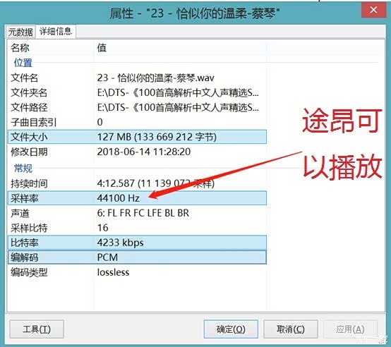 比如我下这首歌,途昂也是不能播放的,原因是歌曲编码是双声道,但实际藏着6条声道,这种非标准的也放不了