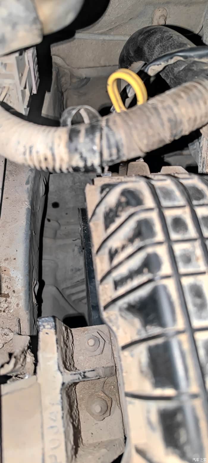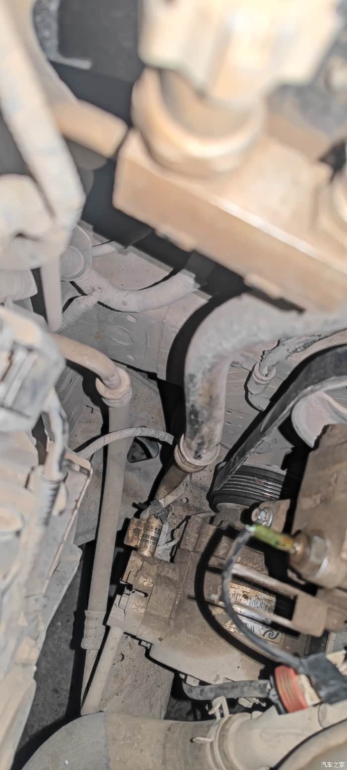 接着发电机皮带拆解,用13的套筒。提醒下。后面有一个螺丝打松。不是卸下来。调节松紧的松,要松很多。不然取不下来。这里就有点累人了。为啥了,11年没动过的螺丝。前面全是土。送到一半的时候。太紧了。拧不动了。不敢拧了,怕断了。然后又拧紧了一点。打了一点机油,又开始拧松,好紧。我也豁出去了。不管了。最后一直拧,拧了一会又很松了。发动机纹丝不动,啥情况,说明书上说三个螺丝。另外一个不知道在哪里?然后我爬到车下面,看到了一个连接的螺丝,13的套筒刚刚好,打松。不要卸掉。卸掉安装特别难受。我就是犯了这个错误。我提前提醒。