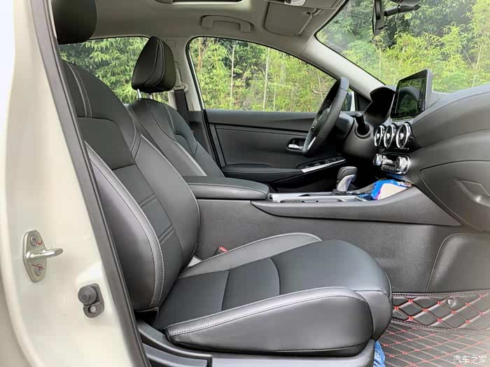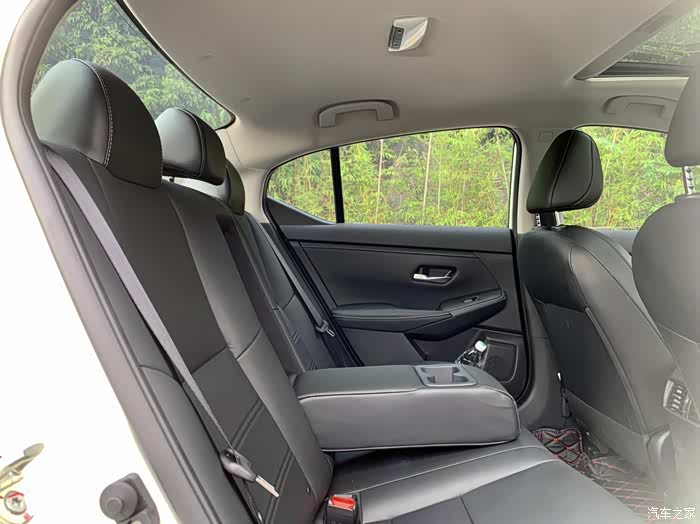 来到里面的内饰,一贯的日产舒适风格,但是我觉得轩逸这一代的内饰变得更加的有豪华感,映入眼帘的是真实缝线的真皮,肉眼可见前排的腿托有一定的加长,我坐上去觉得挺舒服,它不会是那种软绵而是坐到60%下陷后有一定的支撑,一直都说日产大沙发舒服,今天有幸可以坐一下,果然名不虚传。