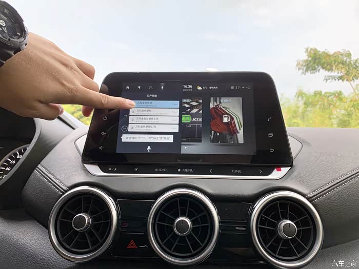 我还觉得这个超智联系统挺好玩的,可以“你好,日产”通过语音唤醒,如果你觉得热你可以说空调调至18度,这个操作非常的灵敏,还可以通过语音进行目的地导航会规划线路,选择一个时间优先即可。