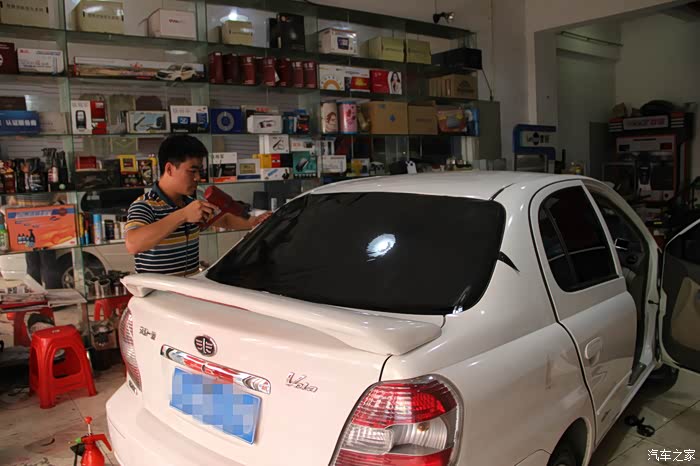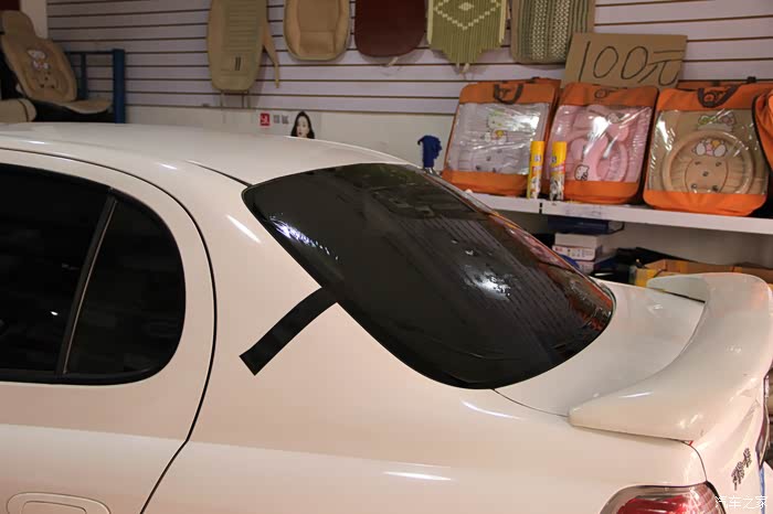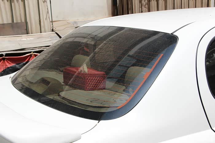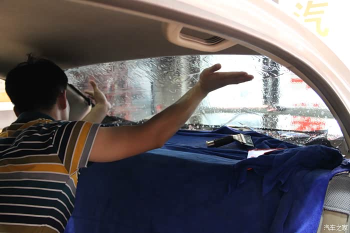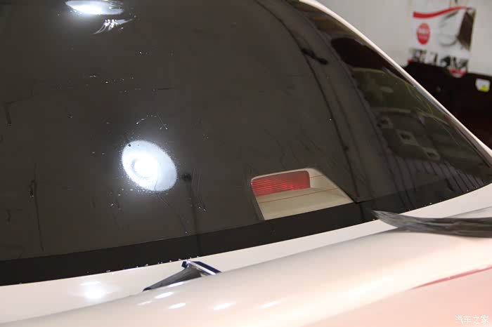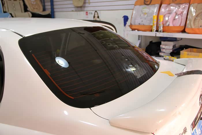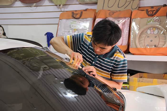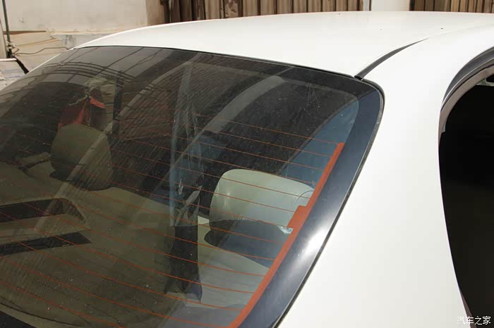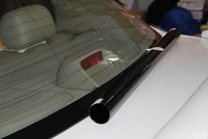 下面再来撕去后档的玻璃膜
