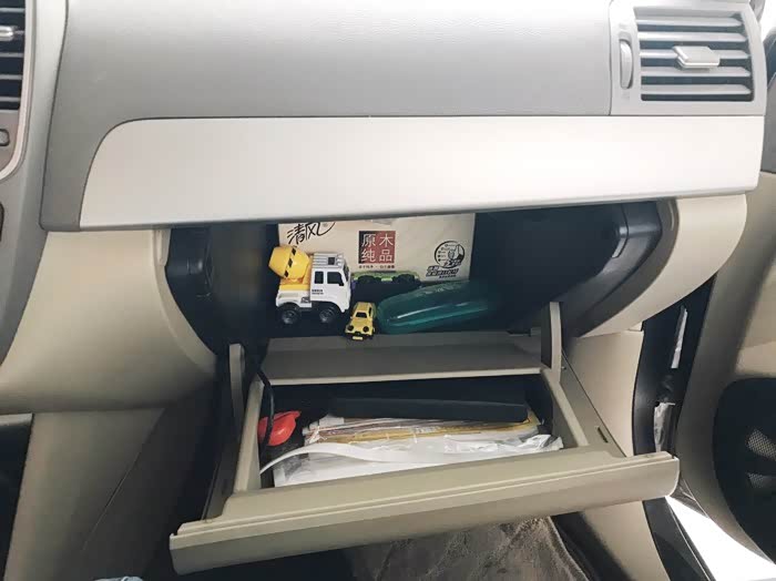 手套箱空间还算满意,可以放不少东西,有了孩子所以放一些安抚用的玩具车。